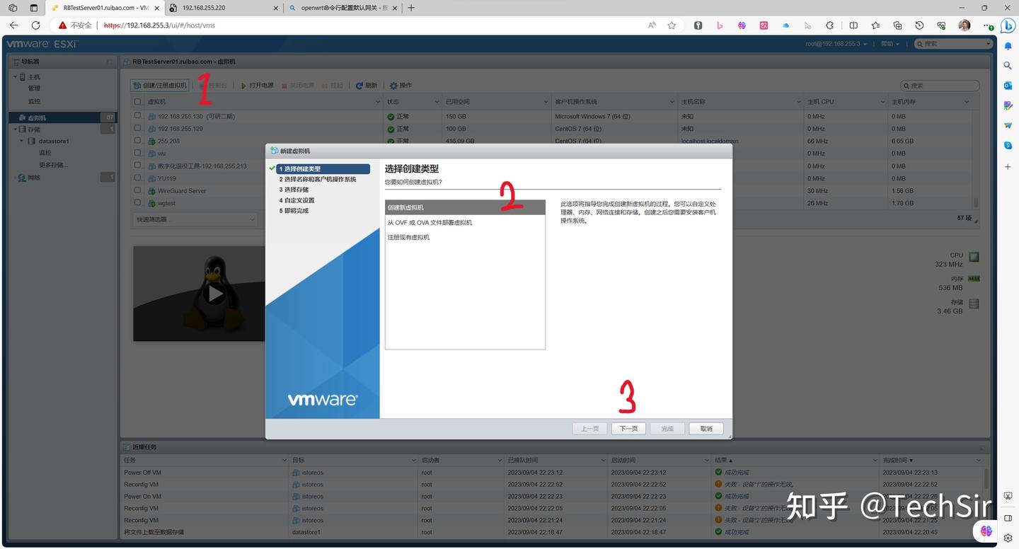 按我红色标记的1、2、3顺序点击,新建一个虚拟机。