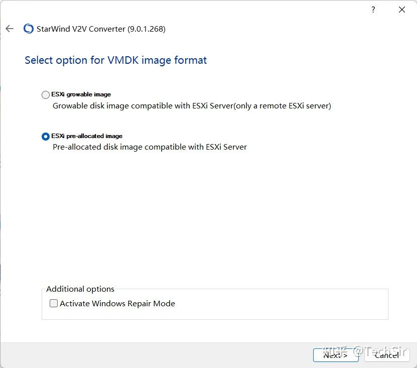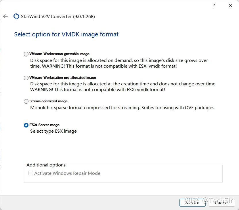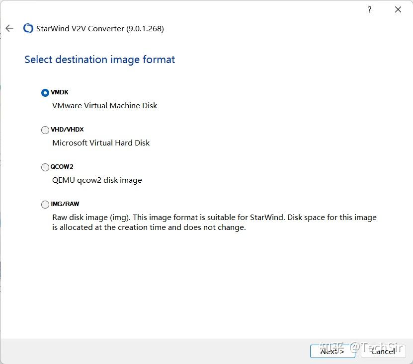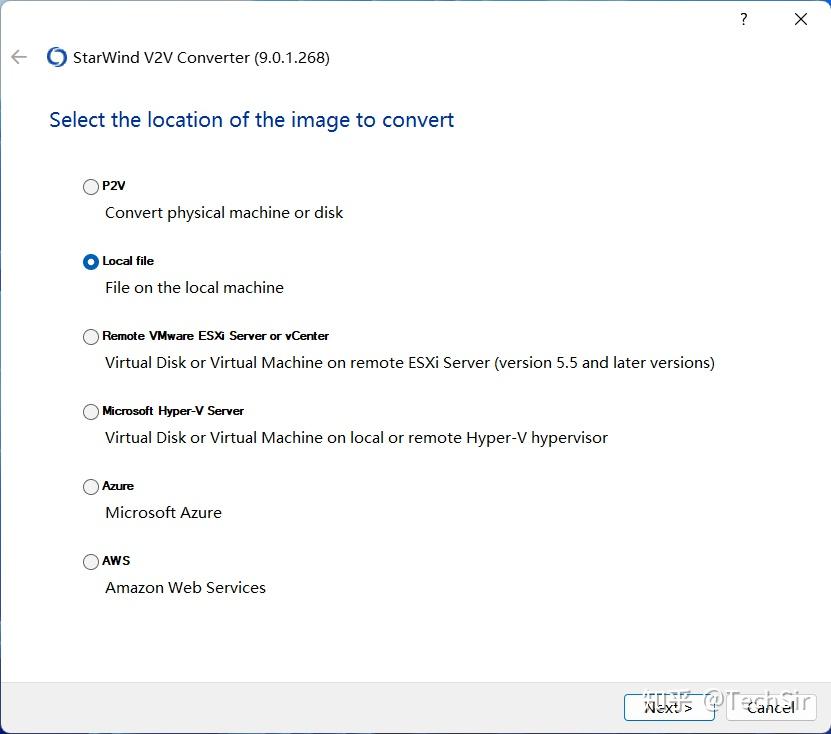 打开刚才下载的StarWind V2V Converter9.0.1.268,选第二项,转换本地文件,然后next下一步。(其他方式我都试过了,结论是不好用,总有不完美的地方,文末再讲)